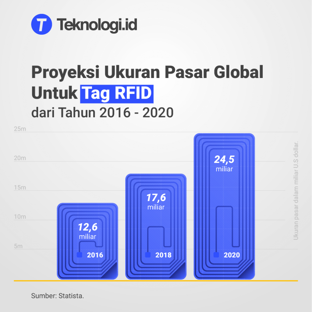 Statistik ini menunjukkan ukuran pasar yang diproyeksikan untuk tag RFID dari tahun 2016 hingga 2020. Pada tahun 2020, pasar global untuk tag RFID diproyeksikan akan berukuran sekitar 24,5 miliar dolar AS seperti yang terlihat pada bagan di atas.