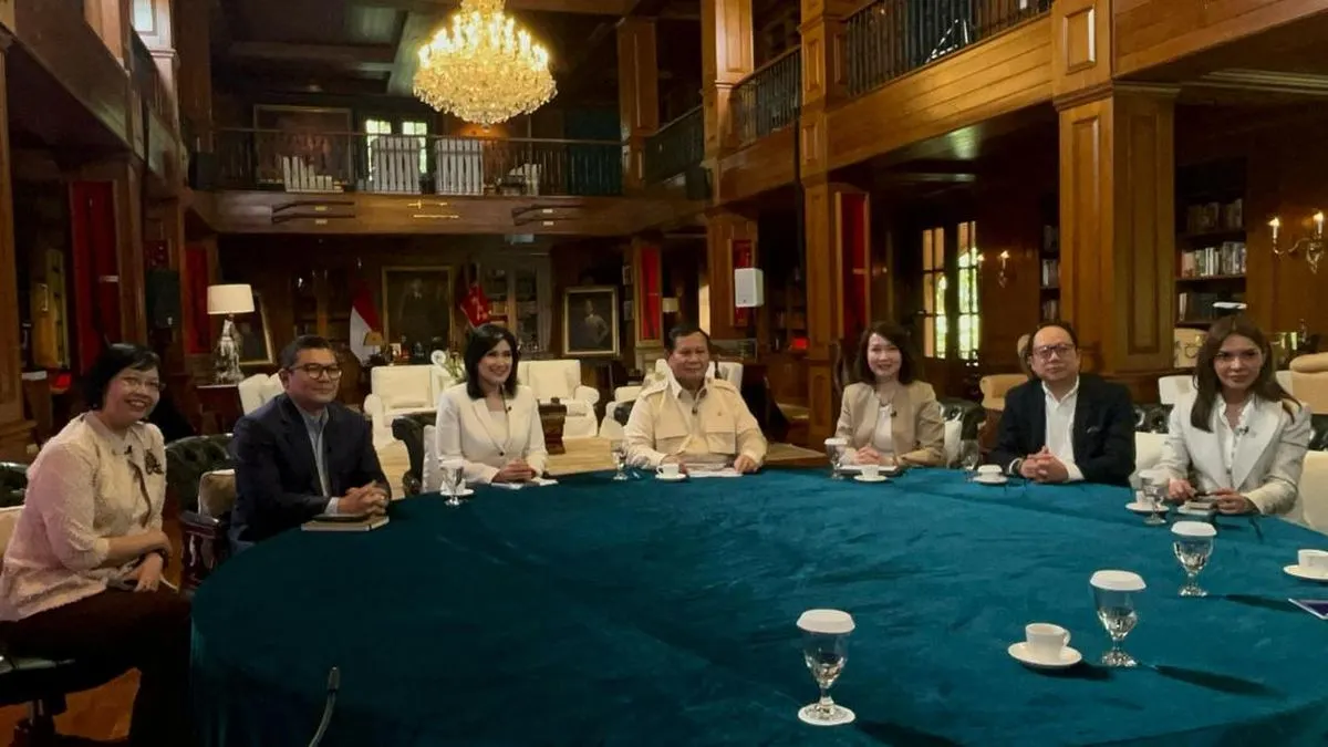 Pertemuan digelar di sebuah meja bundar di ruang perpustakaan pribadi Prabowo, di mana dalam diskusi yang berlangsung selama hampir empat jam tersebut, Prabowo menjawab berbagai pertanyaan penting seputar kondisi dan arah ekonomi nasional.