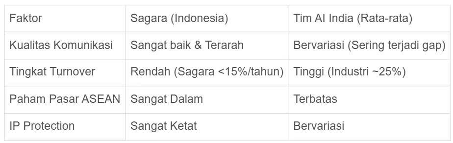Pada tahun 2025, tercatat sekitar 40% dari klien Sagara adalah perusahaan asing yang mempercayakan Sagara sebagai tim AI offshore mereka. Angka ini menunjukkan pertumbuhan hingga 3 kali lipat dibandingkan dengan dua tahun sebelumnya. Lantas, apa yang membuat Indonesia, dan Sagara khususnya, menjadi pilihan utama bagi perusahaan global?