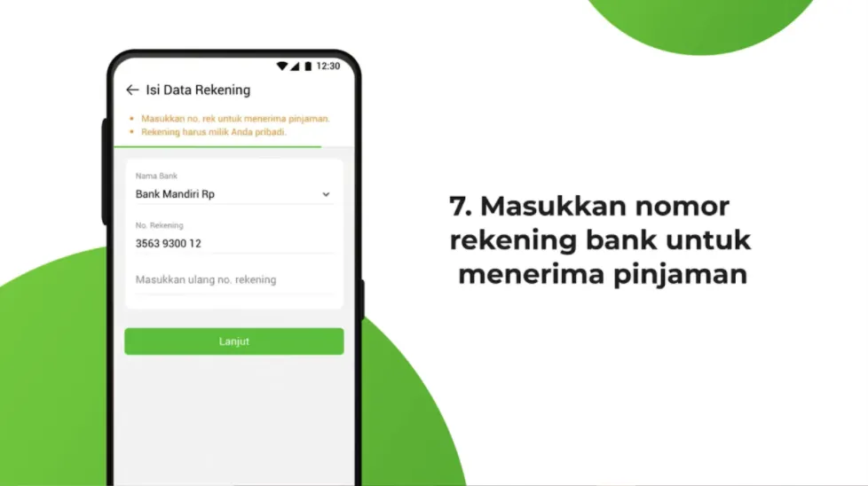 8.Masukkan nomor rekening bank penerima pinjaman.