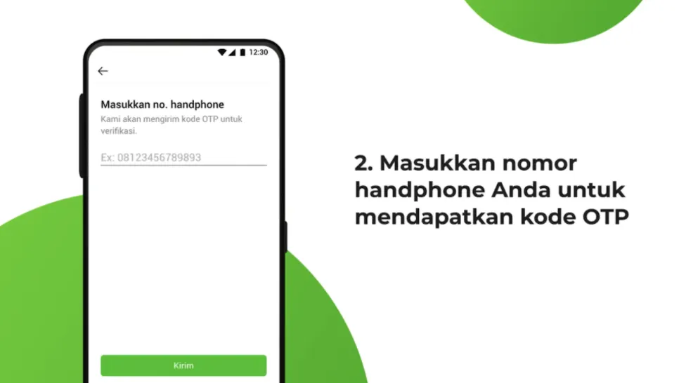 2.Masukkan nomor handphone untuk mendapatkan kode OTP.
