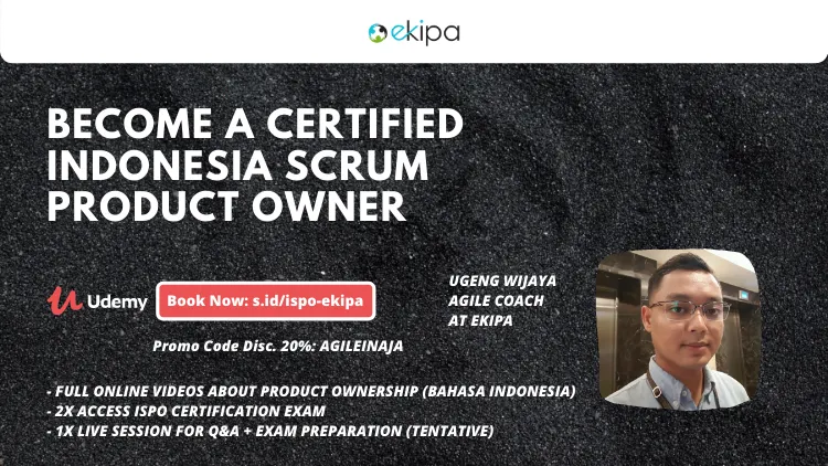 Nah, jika kamu tertarik untuk menjadi Scrum Master atau Product Owner bersertifikasi, kebetulan kami dari Ekipa sedang memberikan discount 20% untuk online course Scrum Master dan Product Owner di Udemy dengan kode AGILEINAJA.