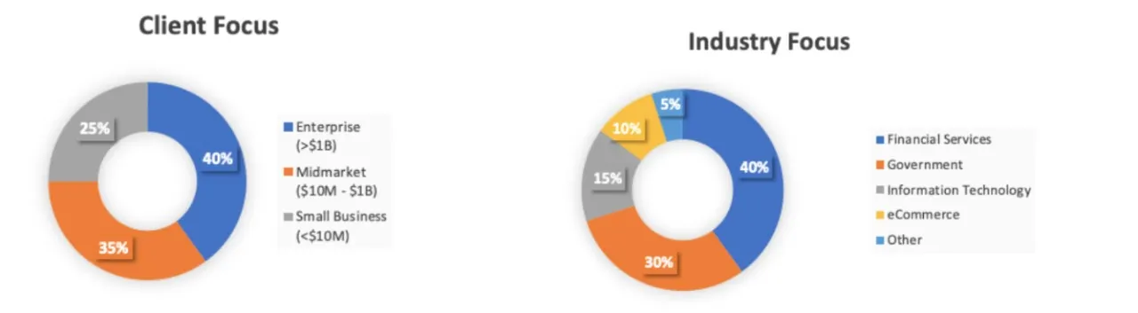 Konsumen dari Sagara Technology ini berfokus pada Enterprise 40%, Midmarket 35%, dan Small Business 25% dengan fokus industri tertinggi pada Financial Services 40%, disusul Government 30%, Information Technology 15%, e-commerce 10%, dan industri lain 5%.