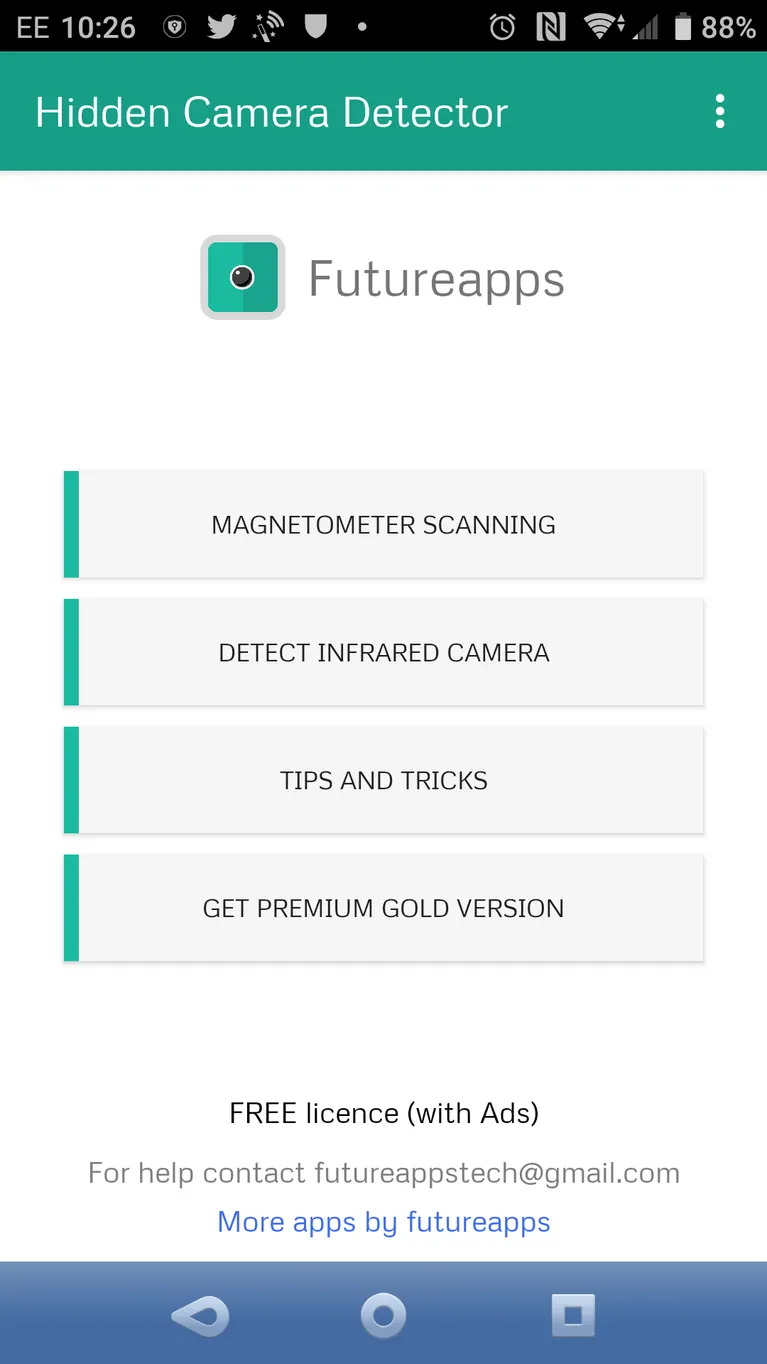 1. Pertama, menggunakan aplikasi yang dapat mendeteksi medan elektromagnetik. Dalam hal ini anda perlu memiliki gambaran tentang dimana kamera tersembunyi berada. Jika pada saat itu terdapat medan magnet yang terdeteksi, kemungkinan besar ada kamera yang disekresikan di dalam dinding atau objek di sekitar-mu.