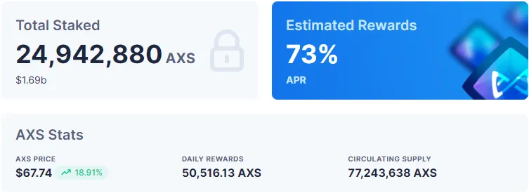 Non-gamer juga telah diberi insentif untuk memegang AXS dengan hadiah taruhan saat ini sebesar 73% yang ditawarkan melalui platform Axie Infinity.