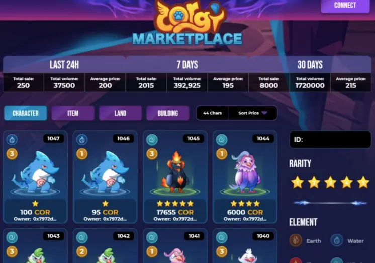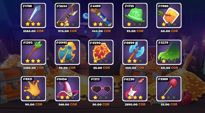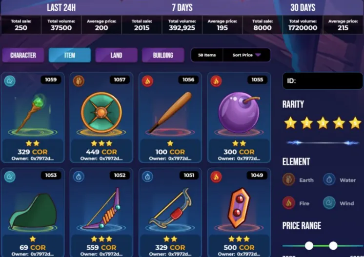 Marketplace NFT adalah tempat yang memungkinkan Anda untuk membeli, menjual hewan, barang, bangunan, dan Land. Mata uang untuk perdagangan di pasar adalah token asli dari game, yaitu COR.