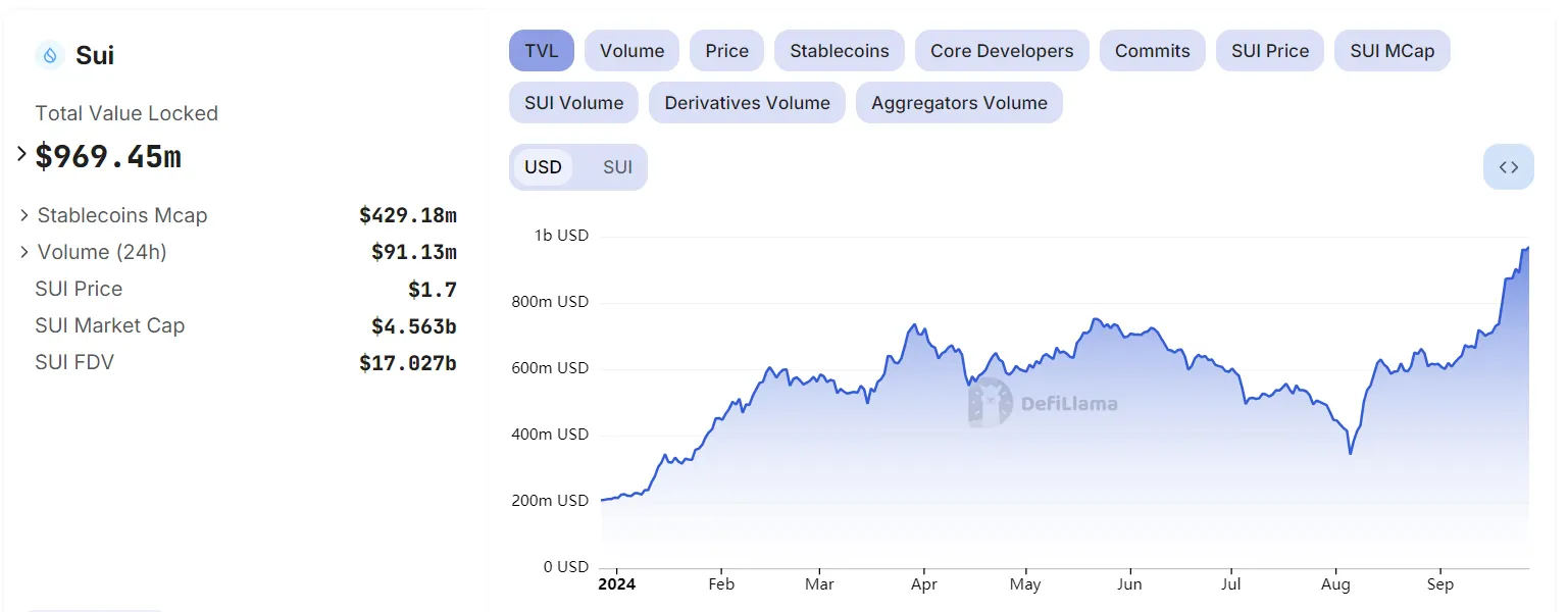 Sui merupakan proyek kripto berbasis blockchain Layer-1. Sui dikembangkan untuk memberikan kecepatan dan skalabilitas tinggi. Sejak diluncurkan, Sui fokus pada aplikasi yang memerlukan throughput besar, seperti gaming dan decentralized finance (DeFi). Peningkatan Total Value Locked (TVL) yang signifikan, dari US$342 juta pada Agustus 2024 menjadi US$969 juta pada akhir September 2024, membuktikan tingginya kepercayaan pengguna. Dengan terus berkembangnya adopsi dan peningkatan teknologi, Sui menonjol di antara blockchain lain yang berfokus pada kinerja tinggi.