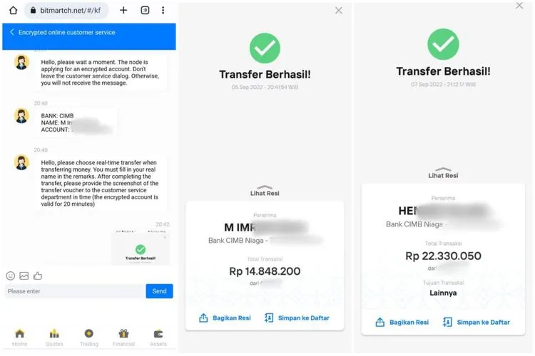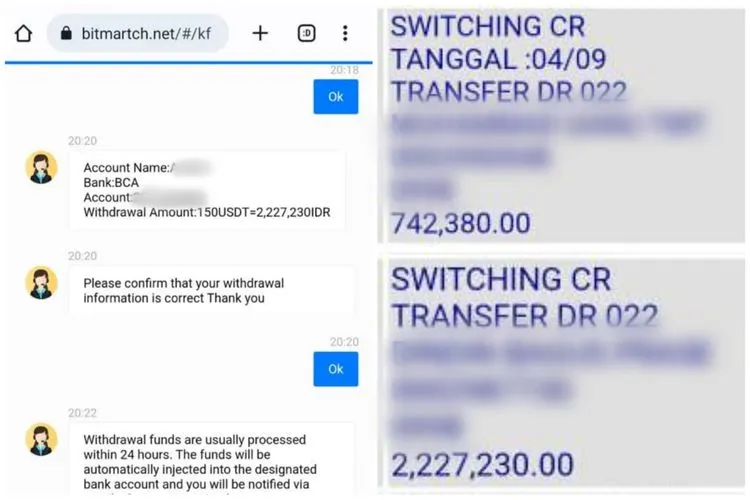 AA juga menceritakan, ketika ia transfer ke bitmartch.net, ia selalu harus melakukan transfer ke rekening yang berbeda dan atas nama orang Indonesia.
