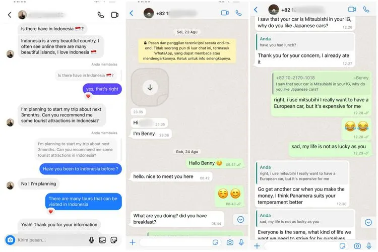 Penjelasan Pig Butchering di atas inilah yang terjadi kepada perempuan berinisial AA. Ia kehilangan harta dalam jumlah tidak sedikit karena ditipu oleh pria asal Korea. Awalnya pria asal Korea tersebut melakukan langkah penipuannya melalui DM Instagram, lalu berlanjut ke WhatsApp.