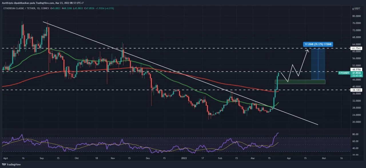 “Koin ETC diperkirakan akan bullish pada pekan ini, pasca pengumuman kemitraan antara ETC Group dan HANetf yang membawa ETF metaverse pertama di Eropa. Sentimen ini membuat investor tertarik pada koin ETC lebih lanjut dan melihat pengembangannya ke depan,” jelas Afid.