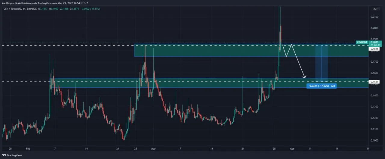 “Dari segi analisis teknikalnya, CFX akan mengalami sedikit rebound, tapi akan tetap turun karena tidak bisa melewati level resistennya. Penurunan bisa terjadi hingga 17% dari harga $ 0,18 ke $ 0,15,” katanya.