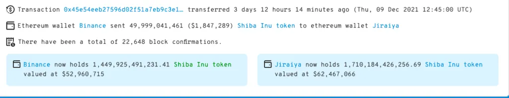 Dompet tersebut, yang dijuluki Jiraiya, telah membuat taruhan besar lainnya pada SHIB atas Binance Smart Chain juga, baru-baru ini meraup lebih dari 100 miliar token seharga $3,5 juta. Dompetnya, menurut data Etherscan, menunjukkan Whale itu telah memegang lebih dari 200 aset berbeda.