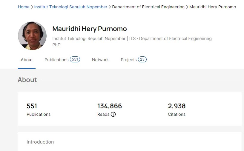 Teknologi.id - Mauridhi Hery Purnomo menjadi dosen tetap di Institut Teknologi Sepuluh November (ITS) yang menempati peringkat 32 'Indonesia Top 10.000 Scientist' kategori Subjek Engineering & Technology. Pemeringkatan ini dilakukan oleh AD Scientific Index yang merupakan sistem pemeringkatan dan analisis tahunan berdasarkan kinerja ilmiah dan produktivitas dari sebuah universitas dan/atau seorang ilmuan.