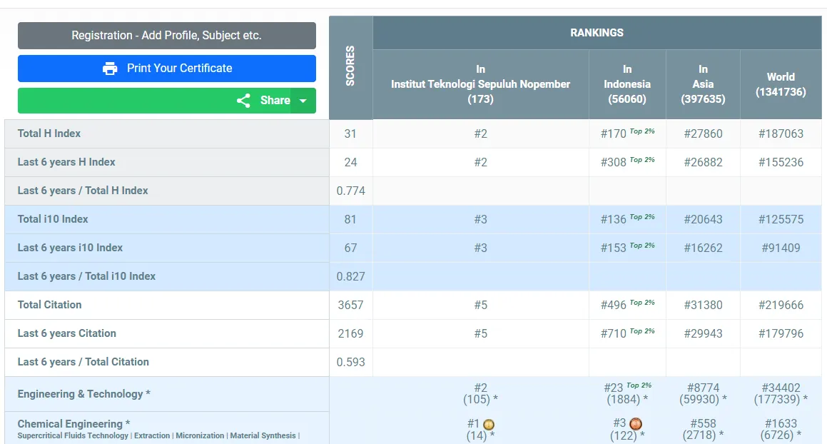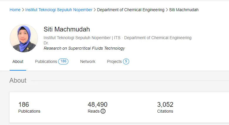 Teknologi.id - Siti Machmudah menjadi dosen teknik pangan dari Institut Teknologi Sepuluh November yang menempati peringkat 22 'Indonesia Top 10.000 Scientist' kategori Subjek Engineering & Technology. Pemeringkatan ini dilakukan oleh AD Scientific Index yang merupakan sistem pemeringkatan dan analisis tahunan berdasarkan kinerja ilmiah dan produktivitas dari sebuah universitas dan/atau seorang ilmuan.