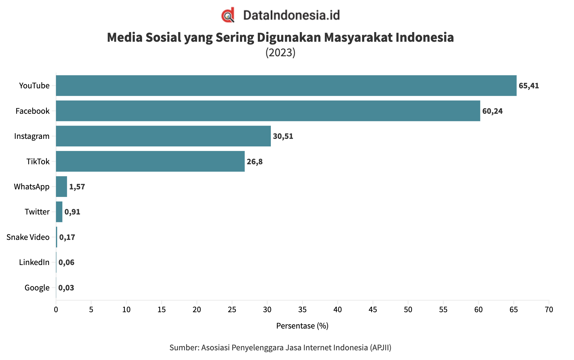 Platform ini telah menjadi media yang sangat populer bagi semua orang, khususnya di Indonesia. Pada Januari 2023, di antara berbagai jenis media sosial yang ada, YouTube merupakan yang paling sering digunakan oleh masyarakat di Indonesia. Hal ini dinyatakan dalam survei yang dilakukan oleh Asosiasi Penyelenggara Jasa Internet Indonesia (APJII) dengan jumlah sebanyak 65,41 persen.