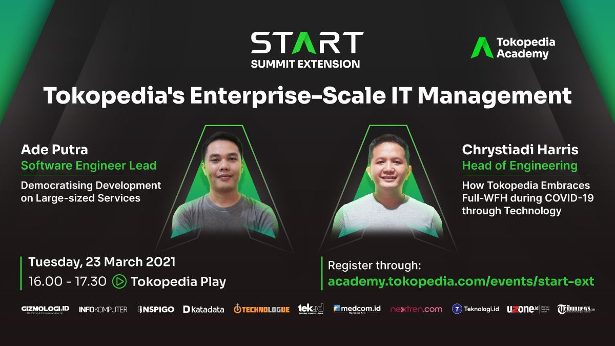 Kali ini, START Summit Extension menghadirkan dua tim teknologi Tokopedia yaitu Chrystiadi Harris, Head of Engineering Tokopedia dan Ade Putra, Software Engineering Lead Tokopedia.