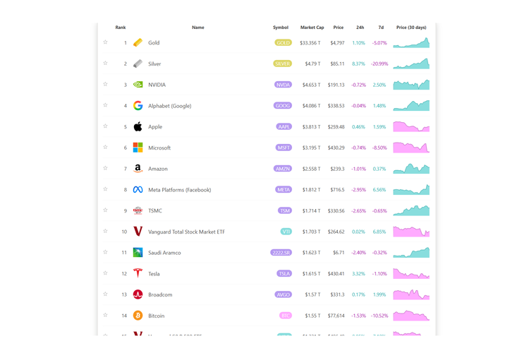 Bitcoin Keluar dari Jajaran 10 Besar Aset Dunia