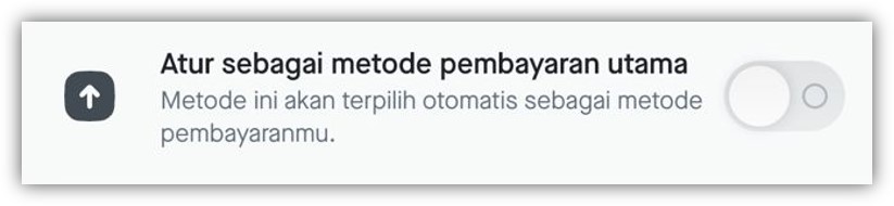 - Klik toggle pada menu atur sebagai metode pembayaran utama.