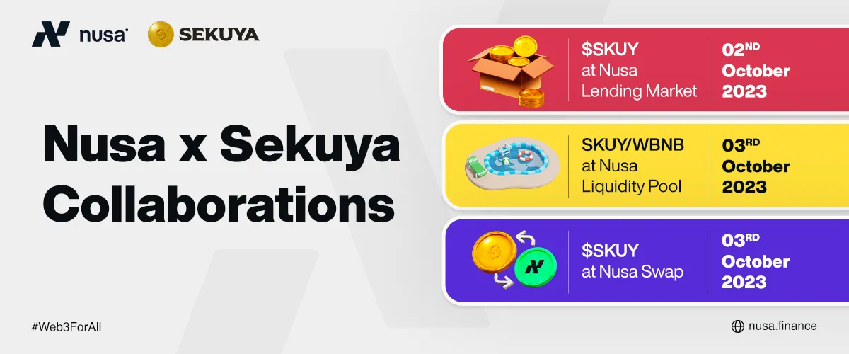 Kerja sama yang dilakukan adalah berupa inklusi token Sekuya yang disebut SKUY pada pasar pinjaman kripto Nusa. Pada acara Ask Me Anything (AMA) yang dilakukan 2 Oktober lalu, Joshua Budiman selaku CEO proyek Sekuya mengatakan bahwa kerja sama ini akan menambahkan utilitas dari token SKUY sebagai jaminan untuk meminjam aset kripto pada pasar pinjaman Nusa. “Selain digunakan untuk mata uang pada metaverse Sekuya, sekarang token SKUY bisa juga digunakan untuk aktivitas keuangan DeFi di Nusa” ucapnya.