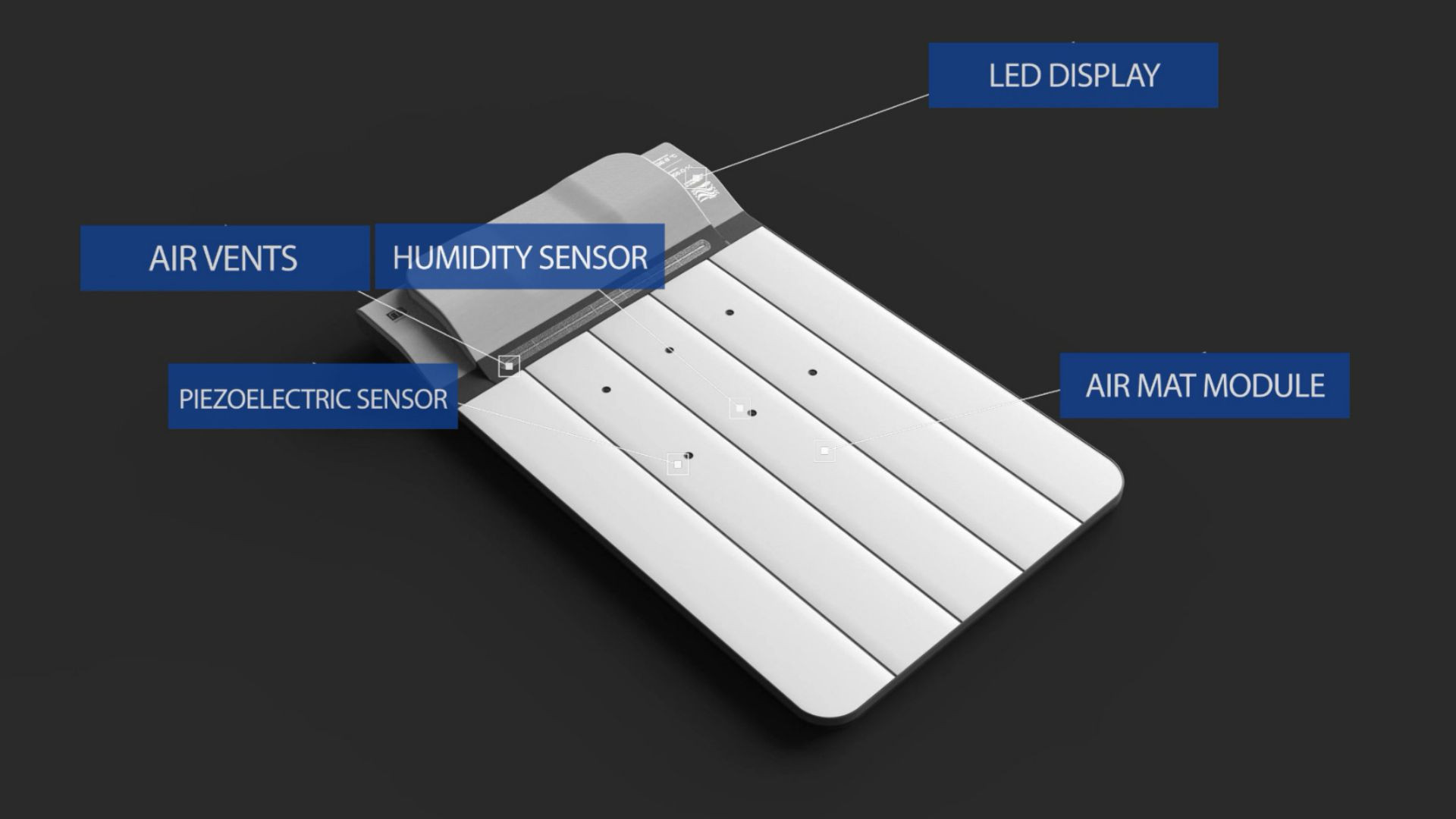 Kasur pintar ini menggabungkan teknologi machine learning dan AI untuk memantau posisi tidur pasien untuk menjegah bedsore pada pasien. Bedsore atau luka dekubitus, yang merupakan luka yang terjadi pada kulit atau jaringan yang lebih dalam akibat tekanan yang berkepanjangan pada daerah tertentu pada tubuh, seperti lutut, pinggul, atau punggung. Luka dekubitus sering terjadi pada orang yang tidak dapat bergerak dengan baik, seperti orang yang sakit atau lansia yang menghabiskan banyak waktu di tempat tidur.