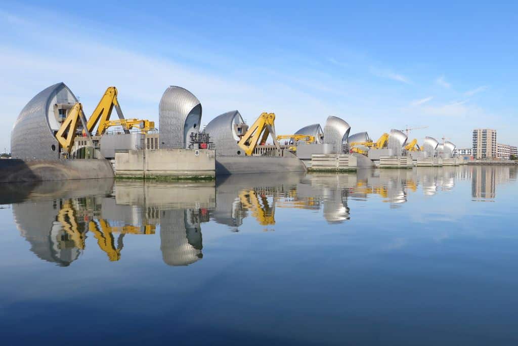 Thames Barrier adalah salah satu teknologi pertahanan banjir paling terkenal di dunia, terletak di Sungai Thames, London. Thames Barrier dibangun untuk melindungi 125 kilometer persegi wilayah pusat London dari banjir oleh gelombang pasang. Penghalang ini membentang sekitar 520 meter dan diperkirakan dapat melindungi 1,4 juta orang dan 420.000 properti. Penghalang ini memiliki 10 gerbang baja dengan berat 3300 ton. Gerbang baja raksasa ini bisa berputar ke atas untuk menahan aliran air laut menjadi dinding penghalang raksasa.