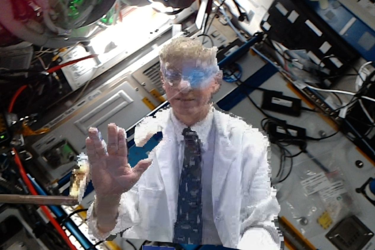 Astronaut Badan Antariksa Eropa (ESA) Thomas Pesquet melakukan percakapan dua arah secara langsung dengan Schmid dan De La Pena di tengah ISS menggunakan kamera Microsoft Hololens Kinect dan komputer yang dilengkapi perangkat lunak khusus dari Aexa.