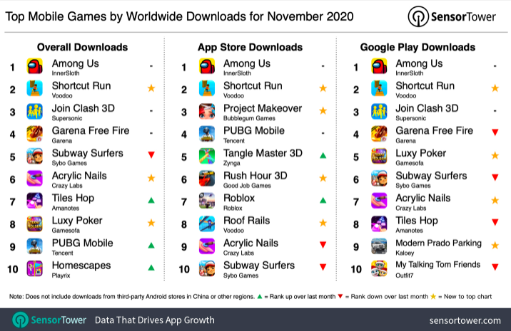 Mengutip data yang dirilis oleh SensorTower, inilah 5 game mobile yang paling banyak didownload sepanjang November 2020. Catatan: data ini adalah data dari SensorTower dan merupakan overall downloads.