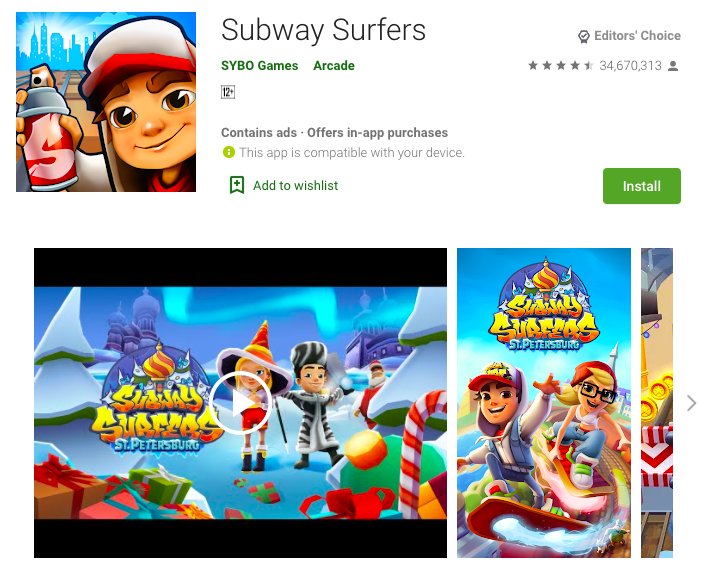 Di urutan kelima ada game Subway Surfers. Game ini juga cukup populer. Hingga saat ini, game ini sudah mendapatkan lebih dari 1 miliar unduhan di Google Play. Ratingnya pun juga bagus, yakni 4,4. Game ini juga menarik dan mudah untuk dimainkan. Game ini pun selalu punya tema-tema baru yang menarik untuk dimainkan. Jadi, pasti seru banget untuk memainkan Subway Surfers.