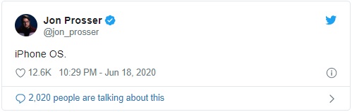 Rumor terbaru, seorang pembocor gadget terkenal, John Prosser melalui akun Twitter miliknya mencuit tentang "iPhone OS".