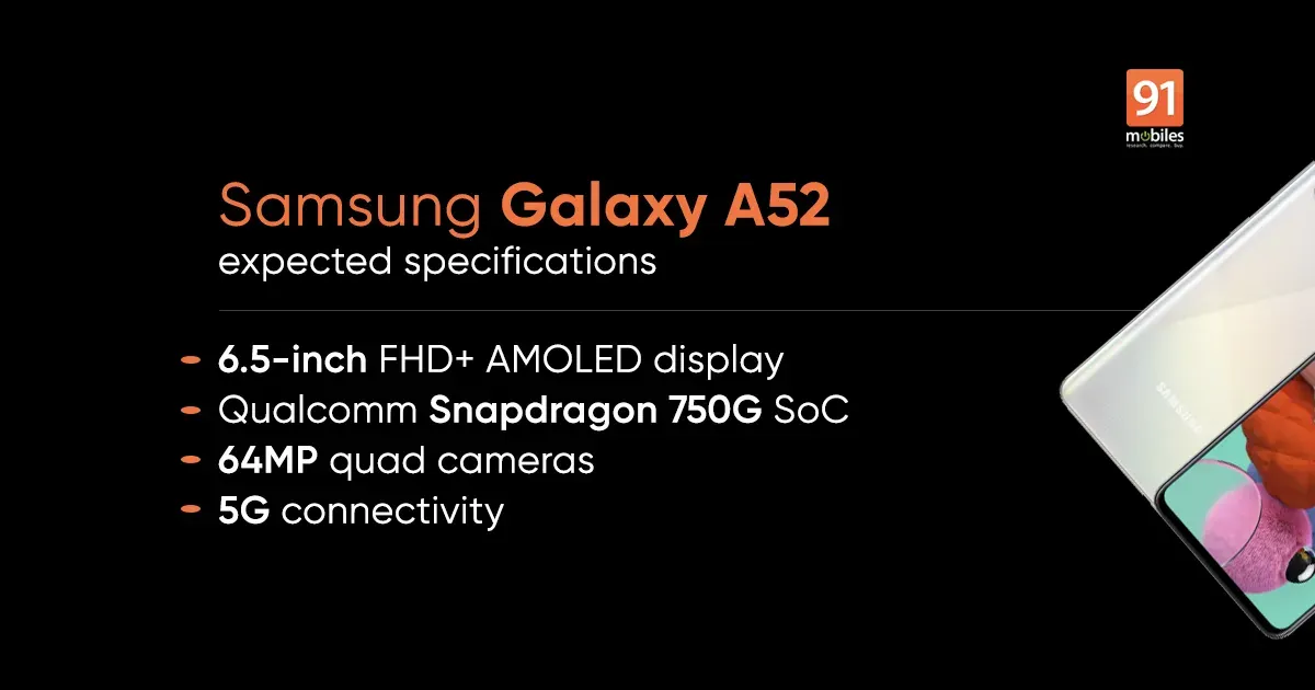Samsung Galaxy A52 kemungkinan akan menggunakan chipset Qualcomm Snapdragon 750G yang sudah mendukung jaringan 5G. Berikut bocoran spesifikasi Samsung Galaxy A52 yang disadur dari GSM Arena.