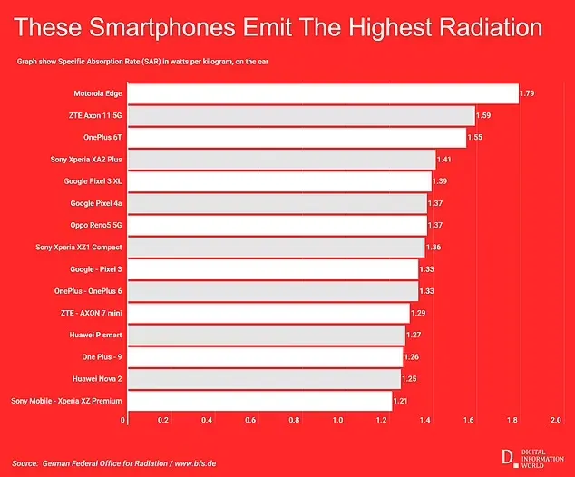 Berikut adalah daftar yang disusun oleh Digital Information World. Kelima model ini memancarkan beberapa radiasi terkuat di pasaran: