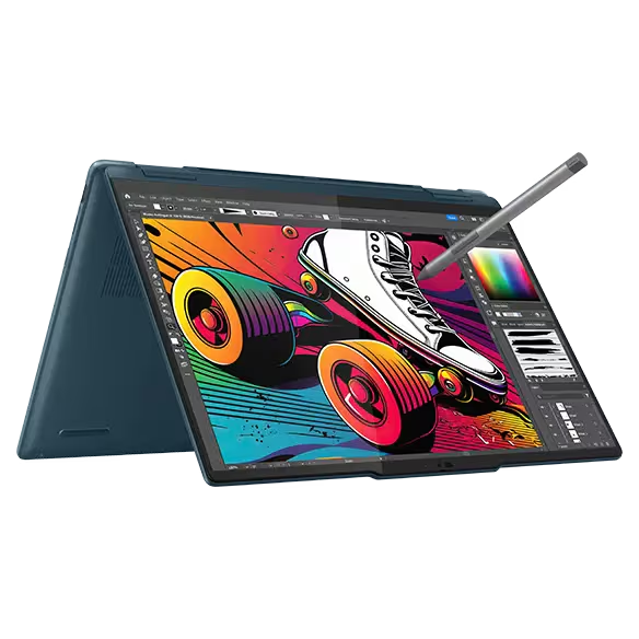 Lenovo Yoga 9i 2-in-1 Aura Edition hadir sebagai laptop konvertibel yang bisa berfungsi sebagai tablet berkat layar sentuhnya. Perangkat ini juga mendukung penggunaan Yoga Pen, pena digital khas Lenovo.