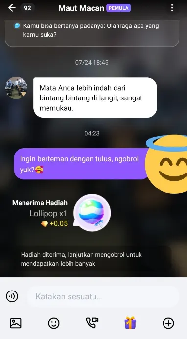 Salah satu hal unik yang terdapat dalam aplikasi ini adalah pengguna bisa mendapatkan berlian yang dapat dikumpulkan secara berkala dan ditukarkan menjadi saldo rupiah ke rekening pengguna. Ketika kamu diajak berkenalan oleh orang lain melalui chat, kamu bisa mengumpulkan berlian, lolipop, atau ikon lainnya untuk dijadikan poin. Menarik bukan? Akan tetapi, ada beberapa tugas dan misi yang dapat dilakukan oleh pengguna baru untuk mendapatkan lebih banyak poin, yaitu