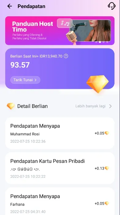 Setelah sudah mengetahui cara kerja mendapatkan poin dari aplikasi TIMO ini, bagaimana untuk mendapatkan rupiah-nya? Sistemnya masih berkolerasi dengan pengumpulan berlian atau poin yang kamu dapat. Semakin banyak berlian yang didapat, semakin banyak juga yang dapat ditukarkan menjadi saldo melalui e-wallet atau rekening-mu. Simak, langkah-langkah berikut ini!