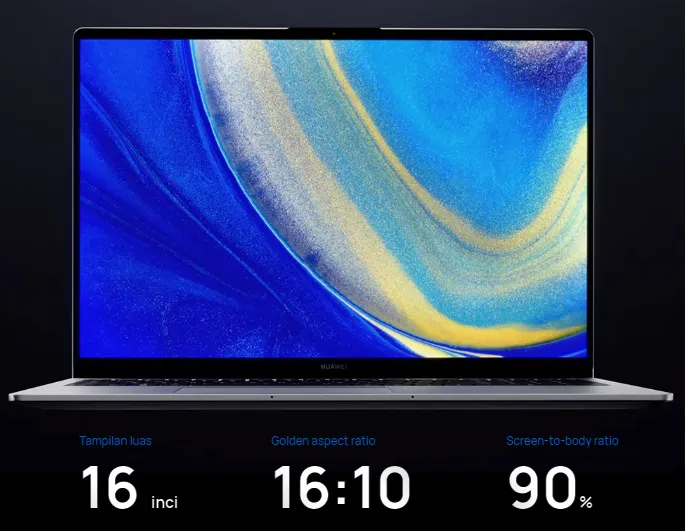 - Layar dengan 16 inci dan berbobot ringan 1.68 kg dengan bezel tipis dan screen-to-body ratio yang tinggi dan memiliki TUV Rehinland Low Blue Light.