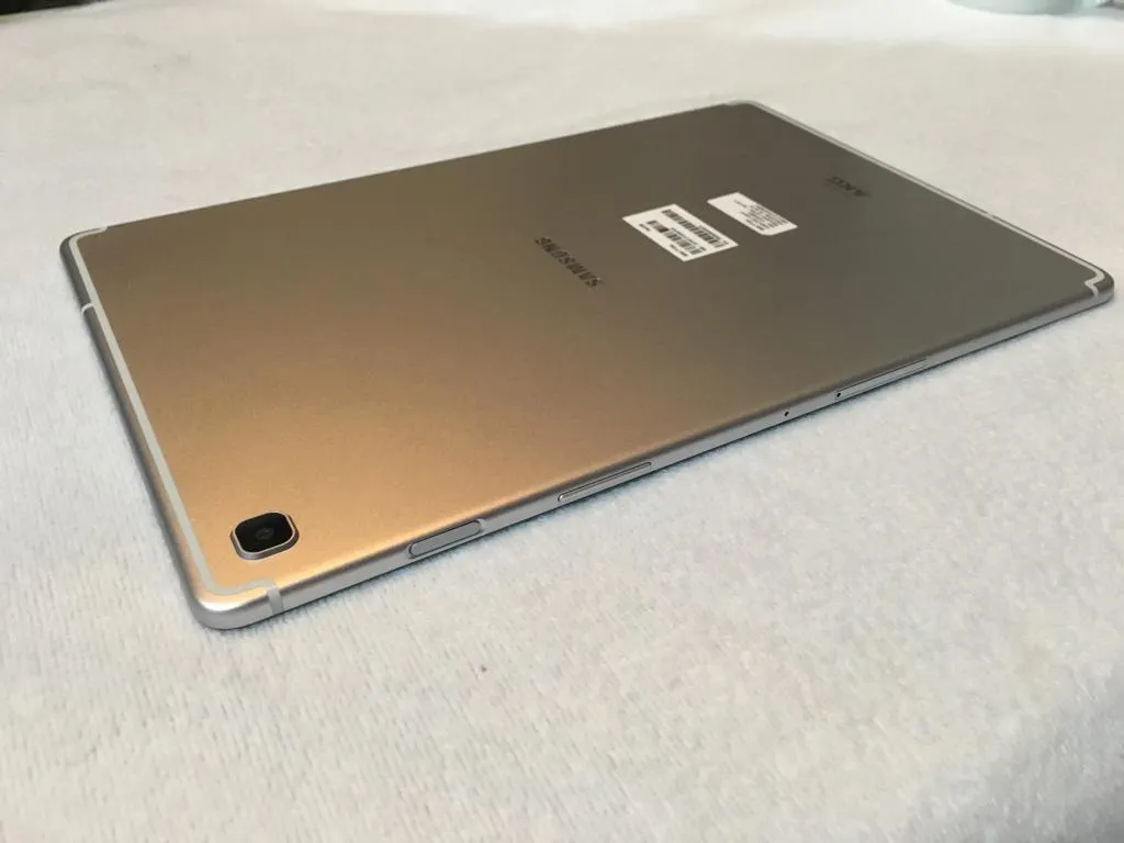 Menilik dari tampilan luar, Galaxy Tab S5e tampil menawan dengan bodi berbahan metal dan berdimensi 245 x 160 mm. Yang lebih menarik, Galaxy Tab S5e memiliki bobot yang cukup ringan, sekitar 400 gram saja.