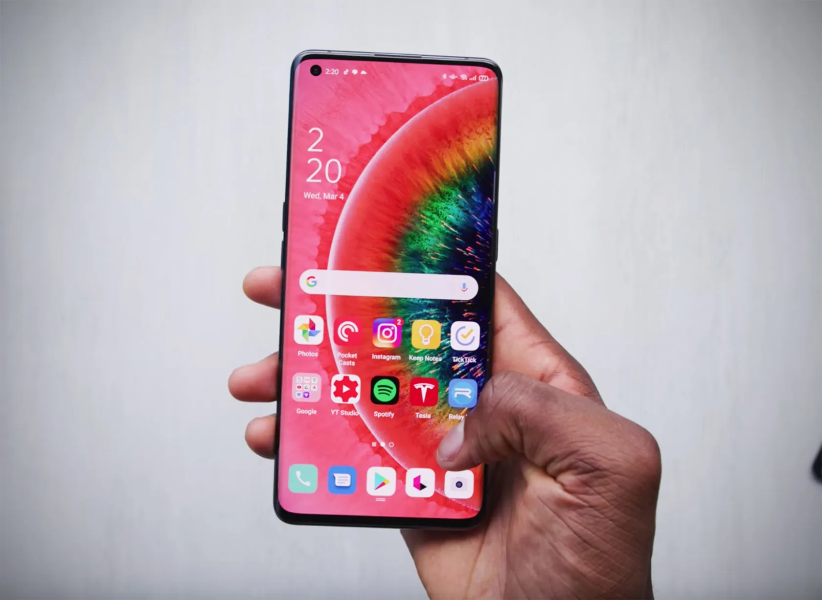 Sementara untuk bagian depannya, Oppo memberikan punch hole atau lubang kamera yang tengah ngetren belakangan ini dikalangan smartphone flagship.Ponsel ini tidak menyediakan terlalu banyak port, hanya ada tombol power serta volume dibagian kanan dan kiri.