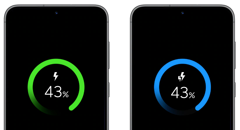 Menurut diskusi di laman Komunitas Samsung, saat ini Samsung memiliki tiga kecepatan pengisian berbeda yaitu 15w, 25w, dan 45w yang masing-masing ditandai dengan warna yang berbeda. Berikut ini arti warna beserta penjelasannya: