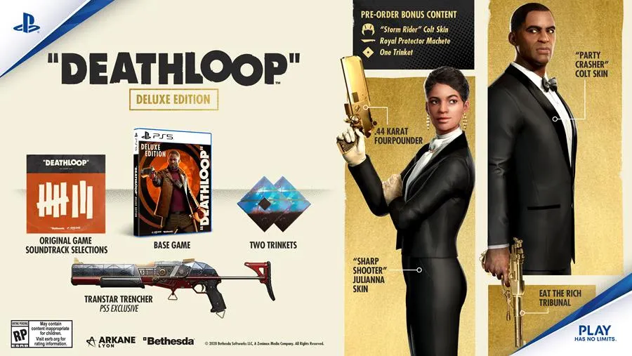 Untuk Deluxe Edition-nya, berharga 79.99 USD atau setara dengan Rp.1,2 juta. Edisi ini juga akan memiliki bonus preorder yang sudah disebutkan diatas, ditambah dengan senjata unik “Eat The Rich Tribunal”, “.44 Karat Fourpounder”, skin kostum Colt “Party Crasher”, skin kostum Julianna “Sharp Shooter”, soundtrack game, 2 in-game buff, dan senjata unik terinspirasi dari game Prey untuk PS5.