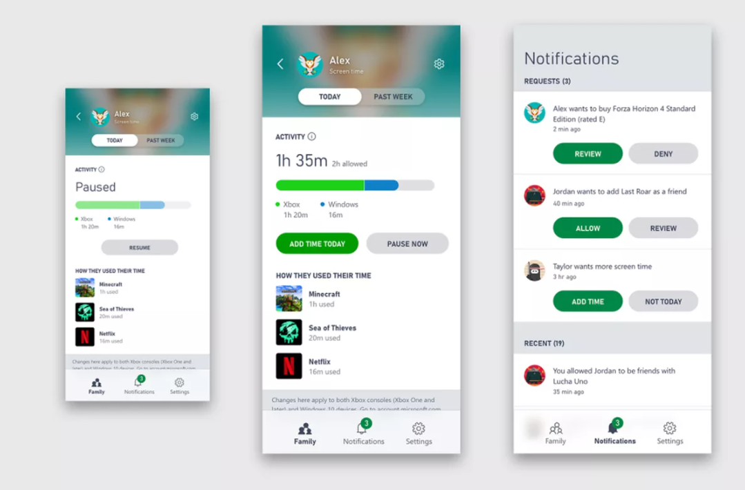 Di samping kemampuan saat ini untuk mengatur dan mengelola jumlah waktu anak-anak dapat bermain di Xbox mereka, orang tua sekarang juga dapat menggunakan Jeda Waktu Layar atau Pause Screen Time untuk memblokir akun secara sementara sebagai motivasi untuk menyelesaikan pekerjaan rumah atau berkumpul dengan anggota keluarga.