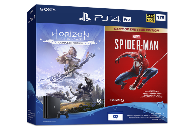Penawaran pertama ini, ditujukkan khusus untuk konsol PS4 Pro. Selain mendapatkan satu buah unit PS4 Pro dengan kapasitas penyimpanan mencapai 1 TB, tapi turut menyertakan dua game fisik Marvel's Spider-Man: Game Of The Year Edition dan Horizon Zero: Dawn Complete Edition.