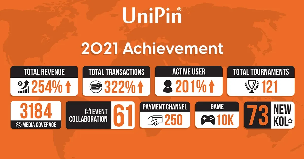 Pada tahun 2021, UniPin mengalami peningkatan yang signifikan di berbagai sektor. Total transaksi UniPin di tahun tersebut meningkat hingga 322%, dan total pengguna meningkat hingga 201% dari tahun sebelumnya. Hingga hari ini, UniPin telah memiliki lebih dari 18,7 juta pengguna aktif di 33 negara. Di tahun yang sama, UniPin telah melakukan ekspansi ke negara-negara di luar Asia Tenggara seperti India, Turki, Rusia dan Brazil.