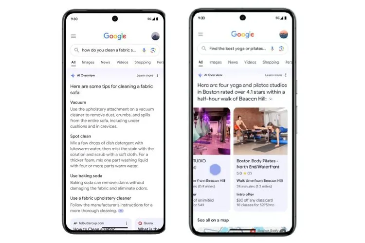 Misalnya, memberikan daftar rekomendasi tempat yoga atau pilates dengan harga dan jarak yang sesuai. Selanjutnya, AI Overview akan menyediakan rekomendasi tempat yoga dengan ulasan, peringkat, harga, dan informasi jarak.