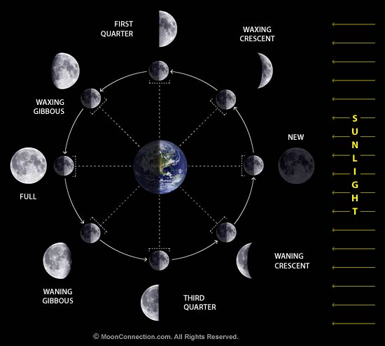 dari bulan sabit yang kecil hingga bulan purnama yang penuh. Hal ini disebabkan