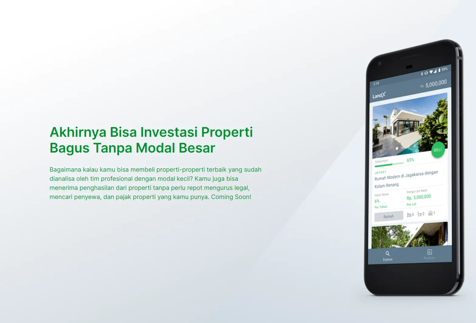 Berbeda dengan aplikasi investasi lain, LandX adalah tempat yang tepat untuk investasi properti. Ada berbagai rumah dan bangunan yang dijual di LandX.