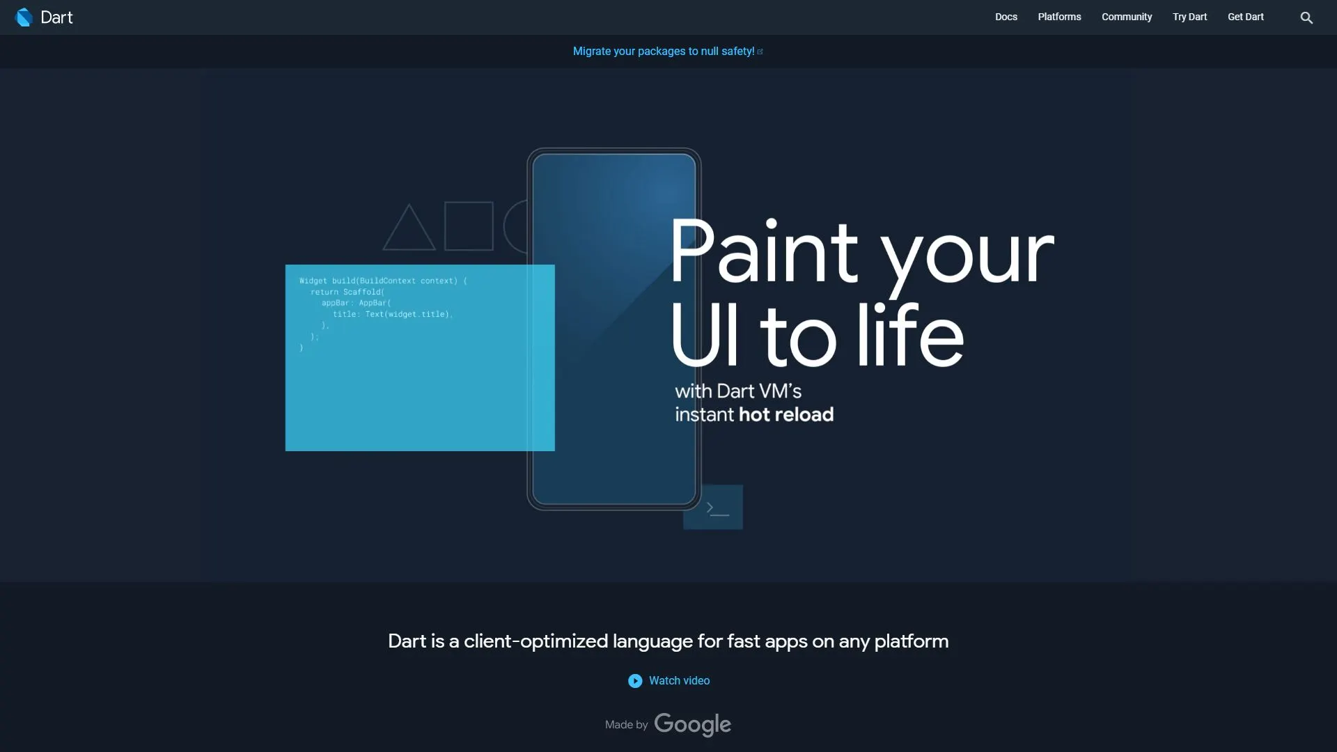 Dart ini digunakan untuk build mobile, desktop, server dan aplikasi berbasis website. Dart juga fleksibel karena dapat di-compile menggunakan native code atau JavaScript.