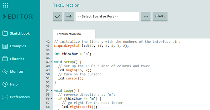 Mungkin tidak mengherankan, tempat terbaik untuk memprogram papan Arduino online adalah editor milik web Arduino sendiri.