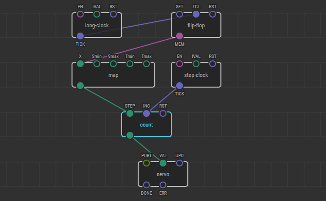 XOD adalah programmer visual open source berbasis node untuk papan Arduino. Setiap blok mewakili perangkat dan sensor, dan kamu dapat membuat tautan di antara keduanya dengan menarik garis dari setiap node.