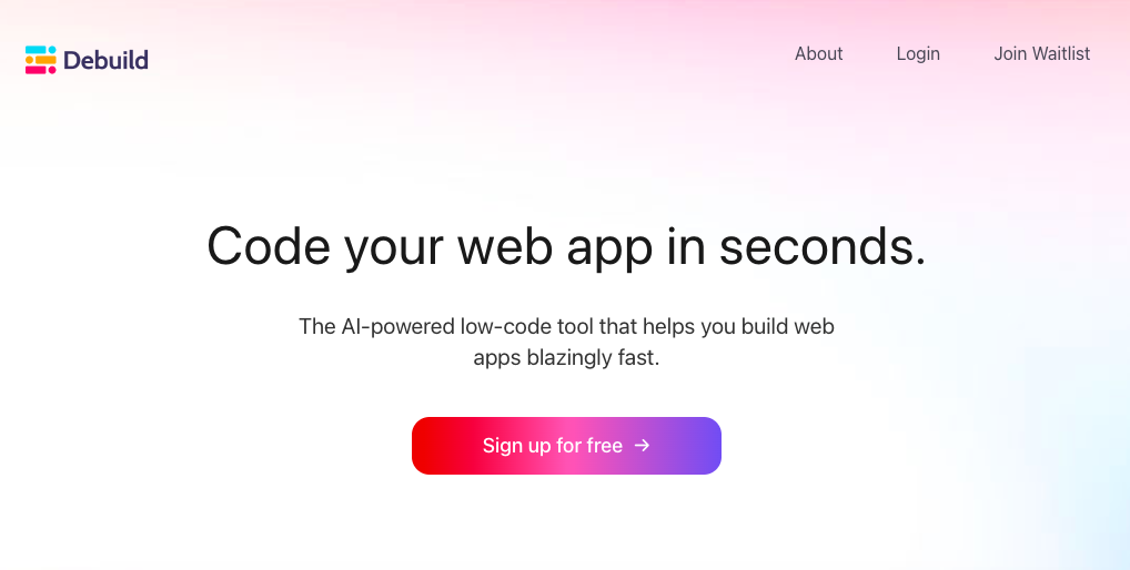 Debuild adalah platform berbasis web yang memanfaatkan kecerdasan buatan untuk menghasilkan kode untuk membangun situs web dan aplikasi online. Dengan menawarkan antarmuka seret dan letakkan, Debuild memungkinkan pengguna untuk membuat situs web unik tanpa memerlukan keahlian pengkodean. Selain itu, fitur kolaborasinya memungkinkan tim bekerja sama pada proyek-proyek situs web, yang lebih mempercepat proses pengembangan.