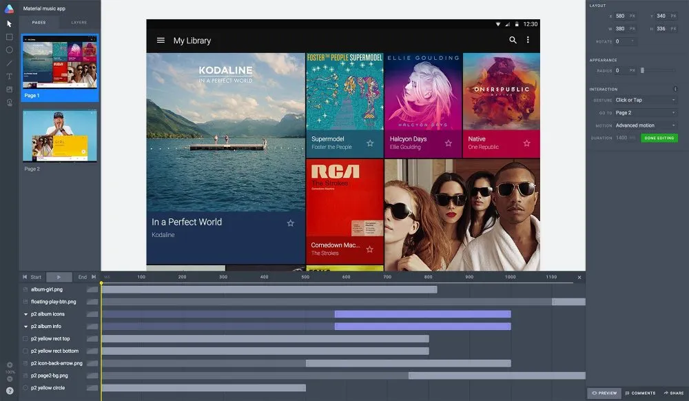 Desain interaksi adalah keunggulan Principle, terutama dalam hal aplikasi seluler. Principle dapat digunakan untuk mendesain user interface yang beranimasi dan interaktif. Entah itu rancangan aplikasi multi-layar, atau interaksi dan animasi baru, Principle akan membantumu membuat desain yang terlihat luar biasa.